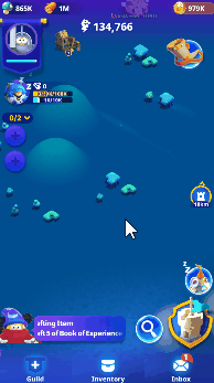 탱크 내부 액체의 채움 높이와 정화 정도(색 전이), 간단한 하이라이트를 표현.